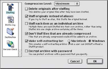 Программы архивации данных. Когда необходимо обмениваться файлами достаточно большого объема, удобно использовать архиваторы. А если нужно перенести их с одной аппаратной платформы на другую, то отличным решением будет программа Aladdin StuffIt компании Aladdin Systems. В частности, эта утилита для Macintosh создает самораспаковывающиеся Windows-архивы.