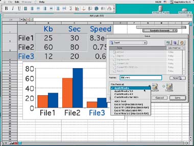 | Программа Spreadsheet пакета AppleWorks умеет конвертировать файлы в формат Excel и обратно |