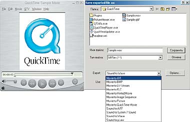 | QuickTime Pro позволяет конвертировать аудио- и видеоданные во множество форматов, для чего достаточно выбрать команду File?Import или File?Export и в раскрывающемся списке указать нужный формат |