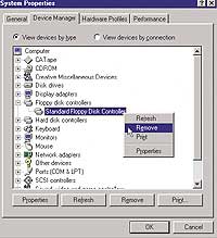 Если среди многочисленных настроек Windows вы не чувствуете себя как рыба в воде, на всякий случай распечатайте текущие настройки. Чтобы это сделать, откройте окно свойств системы и перейдите на вкладку «Диспетчер устройств» (в Windows 2000/XP вкладка называется «Оборудование»). Нажмите кнопку «Печать» (в Windows 2000 выберите меню «Вид?Печать», в Windows XP нужно сначала выделить значок вашего ПК в самой верхней строке, а затем выбрать меню «Действие?Печать»), указав опцию «О системе и всех устройствах». Заставьте систему провести повторную инвентаризацию установленной аппаратуры: нажмите кнопку «Обновить» (в Windows 98/Mе) или щелкните правой кнопкой мыши на значке вашего ПК в самой верхней строке списка и выберите пункт «Обновить конфигурацию оборудования».