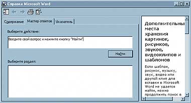 | СОВЕТ. НЕ СПРАШИВАЙТЕ. Некоторые справочные системы предлагают для быстрого решения проблемы ввести вопрос. Не делайте этого, поскольку нужного ответа наверняка не получите. Лучше просто введите несколько ключевых слов, описывающих стоящую перед вами задачу |