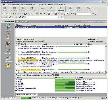 Из российских разработок, нацеленных главным образом на отечественные поисковые ресурсы, наиболее близка по возможностям бесплатная утилита WebMachine (http://www.webmachine.ru). Можно обратить внимание и на вполне качественные Search Plus (http://srchplus.chat.ru) и SerfPilot (http://surfpilot.net).