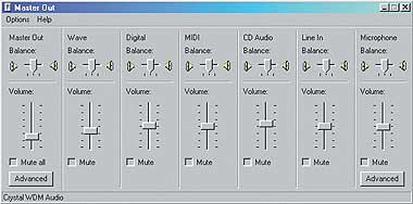 Компактная панель управления громкостью. Если вы щелкнете на значке громкоговорителя на Панели задач дважды, то на экране появится диалоговое окно управления громкостью, включающее регулятор баланса и отдельные регуляторы громкости для Wav-звуков, лазерного проигрывателя и т. д. (конкретный набор зависит от комплекта установленных в вашей системе аудиодрайверов). Чтобы сделать данное диалоговое окно более компактным, нажмите +S (рис. 4). Оно будет сохранять этот новый, более изящный облик до тех пор, пока вы не откроете его опять и не нажмете на +S.