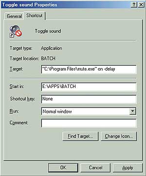 | Рис. 1. Гарантируйте беззвучный запуск Windows, добавив в конце командной строки бесплатной программы Mute переключатели on и -delay |