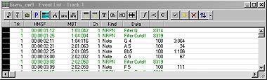 | Рис 5. Список событий Event List в программе Cakewalk Pro Audio 6.0 |