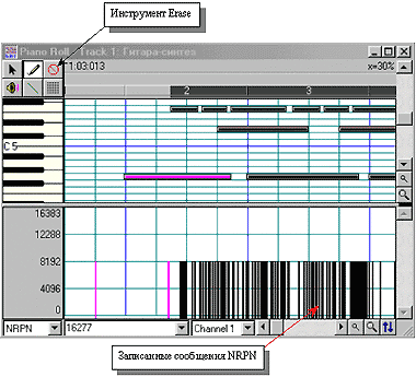 | Рис. 7. Инструмент Erase в окне Piano Roll программы Cakewalk Pro Audio 6.0 |