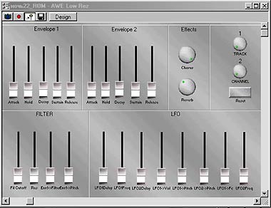 В Cakewalk Pro Audio 6.0 необходимо выбрать пункт Layouts из меню View. Откроется окно Global со списком панелей Studioware для работы с различными синтезаторами. Среди них нужно найти AWE и загрузить ее, нажав на кнопку Load или дважды щелкнув левой кнопкой мыши. Панель представлена на рис. 1. Обратите внимание на ползунки поля Filter в левом нижнем углу. С их помощью мы и получим эффект «перетекания».