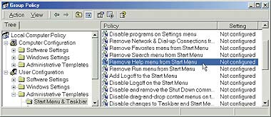 | Чтобы скрыть меню «Справка» и «Документы» в Windows 2000, используйте утилиту «Групповая политика» (Group Policy) |