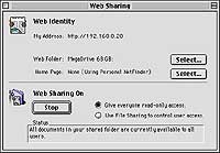 | Рис. 3. Панель настройки Web Sharing Mac OS 8.6.5 предоставляет только минимум настроек |