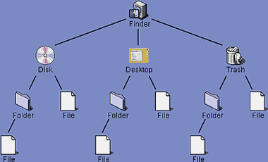 Проиллюстрировать вышесказанное поможет схема, приведенная на рис. 1. На ней показана небольшая часть объектной модели приложения Finder. Всякий компонент этой модели, в том числе и сам Finder, позволяет совершить над собой некоторые действия. Скажем, для диска это будет "извлечь накопитель из привода", для рабочей области - "упорядочить значки и окна", а для Корзины - "очистить содержимое". Также любой из компонентов обладает своими особыми характеристиками: к примеру, для папки это "имя", "местоположение в дисковой иерархии", "размер", "дата создания" и "дата модификации", для файла - кроме перечисленных еще и "тип родительского приложения", "версия файла" и атрибут "только для чтения".