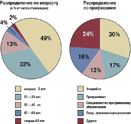 Через Интернет было получено почти 900 откликов, из которых после предварительной сортировки и обработки участие в конкурсе приняли 843. Почта принесла нам более 450 писем, но после удаления повторяющихся анкет их осталось 415. (Интересно, что 58% доверивших свое мнение почте являются пользователями Сети.) Таким образом, в анкетировании приняло участие 1258 человек.