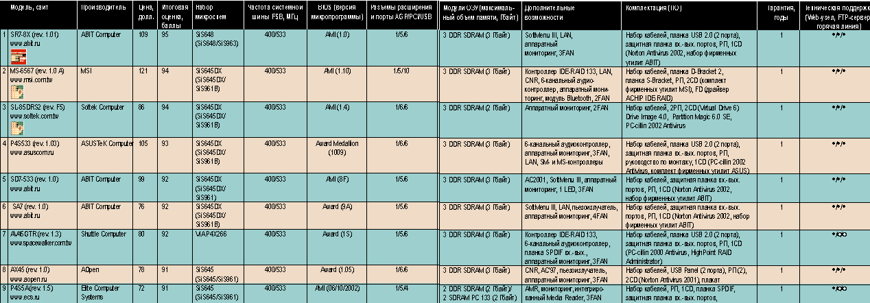 Основные характеристики системных плат для платформы Intel Pentium 4/Socket 478