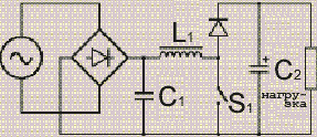 | Упрощенная схема корректирования мощности. (Создана на основе реальной схемы PFC.) |