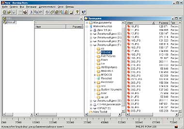 Создание же своего CD-Extra в Nero начинается с выбора соответствующего формата по команде «Файл=Создать» (File=New). В верхнюю часть появившегося окна проекта (там, где находятся папки CDPLUS и PICTURES) нужно перетащить файлы с данными (это могут быть и обычные файлы, и видеоклипы с файлом AUTORUN.INF, и все что угодно), а в нижнюю — необходимые звуковые файлы. Последние можно редактировать точно так же, как и в случае создания обычного аудиодиска. Про начало процесса записи см. выше.