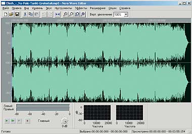 Окно проекта аудио-CD похоже на окно проекта CD с данными, но есть и отличия. Например, окно добавленных в проект звуковых треков имеет кнопки «Воспроизведение» (Play) и «Правка» (Edit). Назначение первой из них понятно — очень удобно прослушивать порой безликие звуковые файлы, чохом добавленные в проект. Кнопка «Правка» вызывает встроенный звуковой редактор, позволяющий довольно ощутимо изменять характер звучания звукового файла. Те, кого смущает работа с мощными звуковыми редакторами типа Cool Edit или Sound Forge, несомненно, найдут для себя много полезного в этом приложении от Nero (рис. 6).