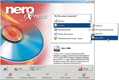 Встраивание Nero Express в последние версии пакета практически не увеличило объем дистрибутива. Если работать с незарегистрированной версией, то при запуске приложения пользователь каждый раз будет оказываться именно в окне Nero Express. Нажатие кнопки «Еще» (More) добавит небольшую нижнюю панель.