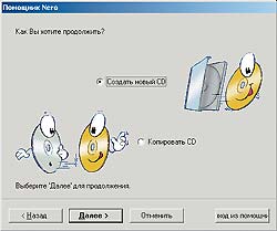 Этакие веселенькие пластиночки предлагают вам пройти весь процесс создания диска без нервной дрожи и суеты. А если вы являетесь счастливым обладателем DVD-рекордера, то в новой версии программы сумеете даже создать свой диск DVD. Но поверьте, вы прекрасно справитесь и без Помощника. Давайте закроем его и окажемся в окне приглашения, предлагающем на выбор свои услуги по созданию дисков (рис. 3).