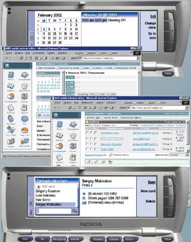 Программные продукты с более широкими возможностями в плане почтовых, организационных и коммуникационных сервисов стали доступны cовсем недавно. В первую очередь это серверные продукты семейства Microsoft.NET Enterprise Servers и Lotus Domino Everyplace. К примеру, в июне 2001 г. в продаже появился сервер мобильных приложений Microsoft Mobile Information 2001 Server, открывающий мобильным пользователям доступ к приложениям Microsoft.NET Enterprise, корпоративным данным и информационным ресурсам.