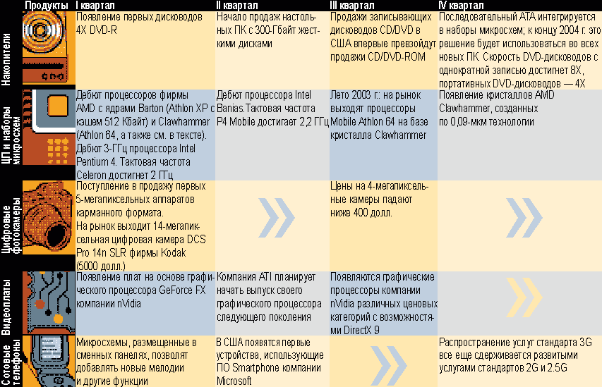 | Планируете покупку? Загляните в ближайшее будущее с нашей таблицей технических вех и новых продуктов, которым предстоит дебютировать в 2003 г. |