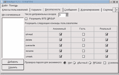 | Редактор настроек ftp-сервера |