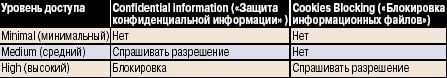Таблица 2. Стандартные уровни доступа в Интернет