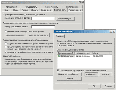 В нашем случае цифровая подпись — это небольшой набор данных (около килобайта), который можно прикрепить к проекту на Visual Basic for Applications для того, чтобы пользователи данного проекта могли запускать макросы из него без утомительного диалога о необходимости этого действия. Иными словами, цифровая подпись — это механизм снятия защиты от вирусов в макросах при работе только с документом, имеющим эту подпись.