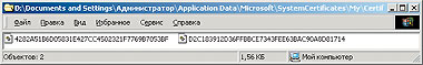По окончании работы программы появится сообщение об успешном создании сертификата — файла, содержащего цифровую подпись. Физически этот файл помещается в папку Certificates, которая является одним из подкаталогов папки с настройками пользователя и называется длинной последовательностью символов (рис.3).