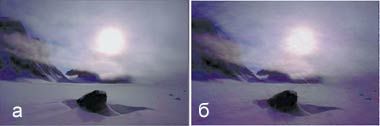 Рис. 3. Воздействие слоев на изображение: а — подключены все слои, б - подключен только верхний слой |
