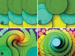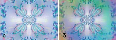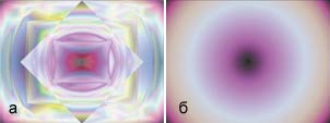 Рис. 17. «Облагораживание» текстуры: а - исходное изображение, б - применены эффекты Spiral In и Opacity (слабая прозрачность в центре и сильная по краям) |
