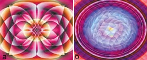 Рис. 4. Текстуры, полученные путем применения фильтров в следующем порядке: а — KPT Gradient Lab+KPT Fluid+KPT Hyper Tiling+KPT Gradient Lab, б — KPT Gradient Lab+KPT Fluid+KPT Gradient Lab |