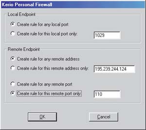 Наличие на ПК Kerio PF или других брандмауэров, установленных на минимальный уровень безопасности, создает лишь иллюзию защиты. Установив брандмауэр и не пожелав тратить время на настройку собственной системы безопасности, вы останетесь так же уязвимы, как и раньше. Степень безопасности, обеспечиваемая брандмауэром, прямо пропорциональна тщательности его настройки.
