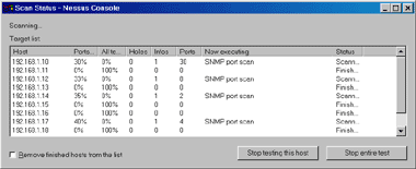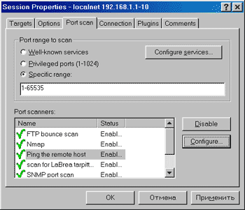 Сканер в состоянии одновременно исследовать множество систем, фактически их число ограничено только вычислительной мощностью сервера и пропускной способностью канала. Исследуя систему, сканер опрашивает все порты заданного диапазона на наличие сетевых сервисов. Определив доступный сервис, сканер начинает анализировать его устойчивость к взлому, имитируя заданные в модулях типы атак.