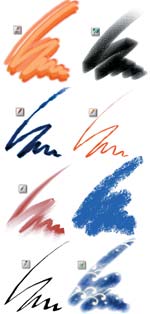 В Painter заключены все виды графики, какие только можно себе представить. Каждый из них имеет несколько вариантов — естественно, ведь даже карандаши бывают разные. Все это взаимодействует с волокном холста в зависимости от устанавливаемой для него степени рельефности, фактуры и механических свойств виртуального инструмента. Это особенно важно, например, для пастельных мелков. Штрихи, создаваемые ими, чувствительны к бумаге. При легком нажиме под краской остается больше незакрытой поверхности, при сильном штрих получается плотным. В случае работы с масляной пастелью цвета штрихов перемешиваются. Все эти параметры можно в любой момент изменить с помощью доступных экранных палитр так же легко, как взять из коробки настоящий мелок или кисточку. Это относится и к бумажным фактурам, меняя которые во время работы вы получаете разные по текстуре отпечатки.