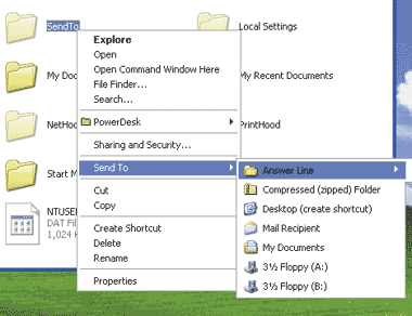Где же находится данная папка? В Windows 9x и Me к ней ведет путь C:WindowsSendTo, а в Windows 2000 и XP — C:WindowsДокументы и настройкиимя пользователяSendTo, где имя пользователя — ваше пользовательское имя для данного компьютера.
