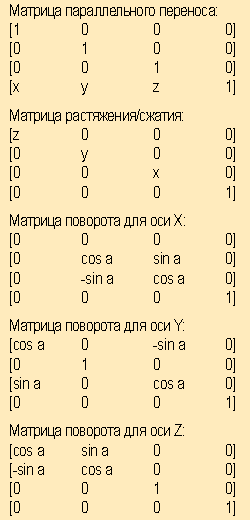 Во врезке приведены примеры матриц преобразования.