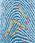 Технология контроля доступа состоит в следующем. Для каждого пользователя формируется специальный цифровой код определенной длины, как правило, не превышающей 1000 бит (это так называемая длина ключа). Сначала выделяются характерные зоны на изображении отпечатка пальца. В каждой из зон узор отпечатка, в свою очередь, классифицируется в соответствии с классическими методами, ранее использовавшимися только в криминалистике. Затем подсчитывается количество слияний и разветвлений линий рисунка, отношение ширины линий к промежутку между ними и т. д.