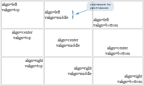 Выравнивание содержимого ячеек по горизонтали (align) и вертикали (valign)