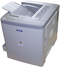 По ряду характеристик эта модель очень схожа с Magicolor 2300DL: тот же ресурс фотобарабана и картриджа, те же максимальная месячная нагрузка и скорость печати, аналогичные возможности лотков. Даже расположение многофункционального лотка (на левом боку) совпадает. Однако здесь мы уже имеем дело с полнофункциональным аппаратом (не GDI), обладающим собственными возможностями по обработке изображений, а следовательно, и более широкой совместимостью с современными ОС. Другие отличия — крупнее габариты и масса, но зато меньше шум при печати. Как и у старших моделей, в этом аппарате предусмотрена возможность установки жесткого диска. По сравнению с аппаратом фирмы Minolta-QMS этот принтер обеспечивает более приглушенную цветовую гамму, а отпечатки выглядят не такими глянцевыми, что для текстовых документов даже лучше. В той же мере, что и у конкурента, проявились некоторые огрехи в точности перехода с одного цветового участка на другой (наползание) и в равномерности заполнения однотонных заливок. Цветовые градиенты выглядели более равномерными, а четкость передачи мелких деталей оказалась на том же высочайшем уровне. Таким образом, можно сказать, что главное отличие изделия Epson — в цветовой палитре, рассчитанной в основном на деловую графику.