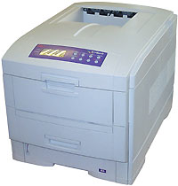 Но есть у этого принтера и ряд эксплуатационных неудобств. Так, он очень долго готовит себя к работе после первоначального включения в сеть, поскольку много времени требуется на самоочистку, диагностику и прочие «гигиенические» процедуры. Аналогичная картина наблюдается и при выключении, поэтому рекомендуется вообще не отключать его от сети, что не всегда и не всем удобно. Кроме того, термопластичный краситель создает отпечаток, менее стойкий к влаге и истиранию, чем изготовленный на традиционном лазерном принтере. Ну и самый досадный момент — сильный шум, производимый принтером при печати. При таком шуме даже по телефону нормально поговорить не удастся, поэтому для данного устройства очень желательно отдельное помещение.
