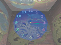 Помимо игр, на диске есть разработки, которые в какой-то степени относятся к жанру demo scene — нечто среднее между хранителями экрана и VRML-объектами. Когда они отображают какую-нибудь сцену или предмет, то одновременно позволяют изменять отдельные его параметры, в частности хранитель экрана в виде часов. А ведь и они сделаны отнюдь не в программистской студии. Исходного текста к этой программе, увы, нет, но вы можете увидеть, какие горизонты вам доступны.