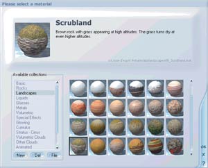 В примерах, имеющихся на прилагаемом к нашему журналу диске, показано, как выбирается тот или иной тип материала. Здесь же стоит заметить следующее: с помощью программы достаточно просто и легко моделировать озера, реки или поверхность, например, покрытую галькой или песком, но получить поверхность, схожую с реальной зеленой лужайкой, сложнее.