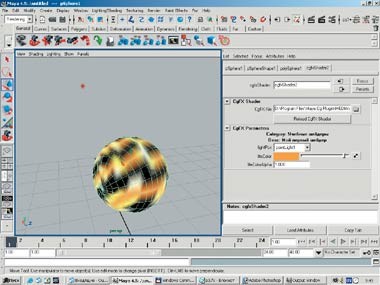 Теперь осталось выбрать в поле CgFX File нужный файл шейдера. Бывает, что не все шейдеры подключаются безупречно, так как ваша графическая плата может их просто не поддерживать. Возможно также наличие ошибок в самом шейдере. Однако на моей GeForce2 MX удалось с успехом поработать c довольно многими шейдерами из пакета расширения для Maya. Определить успешность загрузки можно по полю CgFX Parameters. Если в нем не появился список параметров указанного шейдера, то лучше выбрать другой файл. Кроме того, при успешной загрузке объект на сцене конечно же поменяет текстуру соответственно шейдеру (рис. 3).