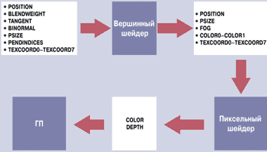 Последним потоком является вывод данных из пиксельного шейдера, в котором пока возможны только две предопределенные переменные: COLOR и DEPTH (рис. 5).