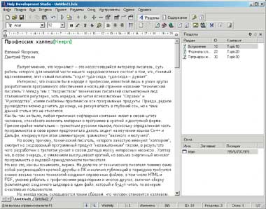 Приемы работы с HTML Help Workshop (невзирая на некоторые отзывы, что, дескать, сей продукт предназначен исключительно для разработчиков) вполне доступны любому пользователю, знакомому с основами создания HTML-страниц. Что же касается Help Workshop, то, по мнению многих хэлперов, процесс создания «Справки» в этом приложении весьма запутан, чем не преминули воспользоваться сторонние программисты, облегчившие жизнь армии технических писателей.