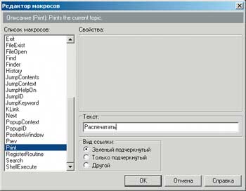 3. Ссылки. Важная часть внедряемых объектов — это, конечно же, ссылки, способные определять как переход в другой раздел «Справки», так и URL для сетевых адресов. Для создания обычной ссылки, т. е. ведущей на страницу другого раздела, следует выделить текстовый фрагмент или рисунок (вернее, команду для рисунка), после чего нажать кнопку «Стандартная ссылка» (либо вызвать одноименную команду в меню «Вставка»). В окне свойств ссылки подбираем нужный раздел, который должен открываться при нажатии на ссылку, а флажок в переключателе «Всплывающее окно» позволит открыть нужный раздел в отдельном окне.