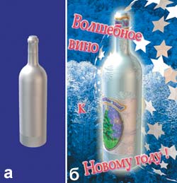 | Рис. 12. Реклама волшебного вина к Новому году: а — исходный 3D-объект; б — окончательный результат |