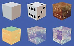 Фильтр KPT Scene Builder (рис. 6) позволяет добавлять к рисункам трехмерные объекты, что нередко бывает нужно художникам, особенно занимающимся рекламой. Конечно, для этого можно выбрать и любой другой пакет трехмерного моделирования. Однако, во-первых, фильтр KPT Scene Builder способен работать непосредственно из таких популярных программ, как Photoshop или Corel Painter, и, во-вторых, он выполняет рендеринг объектов гораздо быстрее, чем его именитые сородичи (3dStudioMax, Maya или Lightwave). На рис. 7 наглядно представлено, на что способен фильтр.