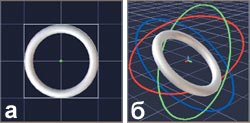 | Рис. 9. Работа с тором в режиме редактирования: а — режим Edit 2D, б — режим Edit 3D |