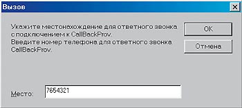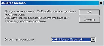 Рассмотрим более изящное решение задачи «обратного звонка». Суть его заключается в поддержке протокола CBCP (Callback Control Protocol), разработанного компанией Microsoft и используемого в WINDOWS NT RAS. В момент инициации телефонного соединения с сервером удаленного доступа программа—клиент удаленного доступа, являющаяся частью ОС Windows, передает запрос на поддержку сервером функции «обратного звонка». Это реализовано на уровне сетевого протокола, происходит незаметно и независимо от пользователя. Если сервер поддерживает данную функцию и для пользователя установлены соответствующие разрешения, то появляется окно, содержащее извещение о том, что сейчас сервер произведет «обратный звонок», и запрос номера телефона пользователя.