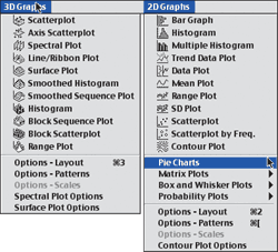 Теперь настало время сказать и о графических возможностях STATISTICA. Простой перечень типов графиков, которые могут быть построены, занял бы, пожалуй, как минимум полколонки, поэтому смотрите рисунок, на котором изображены меню графиков, не забывая о том, что в каждом из основных типов есть еще множество вариантов.